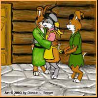 She nods as he carefully helps her up. Leaving Tina sleeping next to the wall as he half carries Tasha into her home, and makes her comfortable on a cot. He then returns to carry the little bunny where Tasha wishes him to put her. The two young rabbits sit next to each other talking till Tashas father came home.